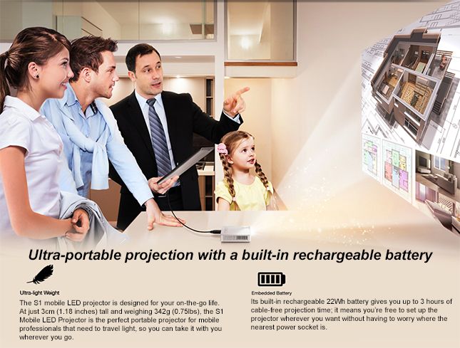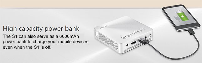 Internal Battery: 5 V, 6000 mAh, Battery life: 3 hours @ 50 lumens *1