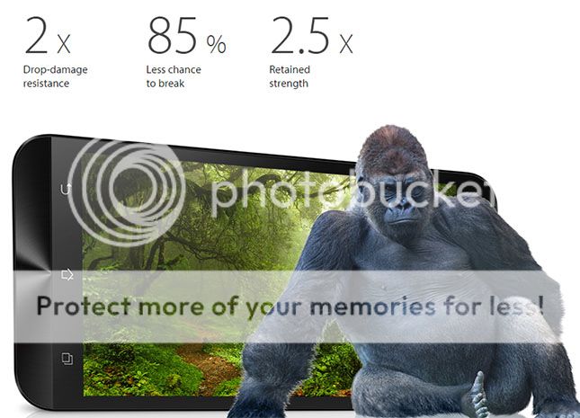 (ZE500KL) Gorilla Glass 4 display offers twice (2X) the drop-damage resistance of its predecessor,