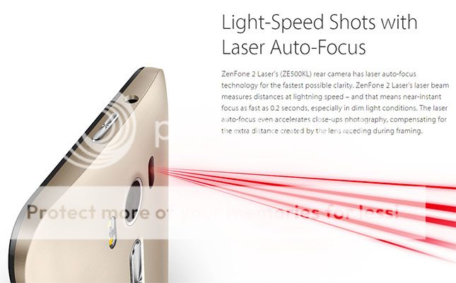 ZenFone 2 Lasers 8MP PixelMaster camera with its f/2.0-aperture lens captures stunning, high-resolution photos with zero shutter lag. The brand-new laser-autofocus feature greatly