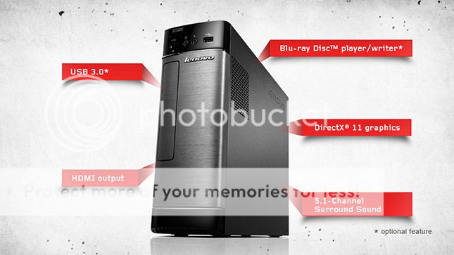 Lenovo H520s Desktop ![]() COMPACT RELIABILITY. EFFORTLESS FAMILY COMPUTING. Integrate your online and home life with space-saving, understated design and quiet reliability, while benefiting from an extensive entertainment and productivity feature set. |