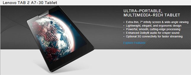 The TAB 2 A7-30 offers up to 8 hours of WiFi browsing on a single battery charge.