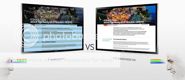 Eye Saver Mode: Unlike other colors emitted from screens, blue light wavelengths have a more stimulating effect on the retina, causing eye fatigue. Eye Saver Mode optimizes your viewing comfort by smartly reducing blue light emissions at the touch of a button.