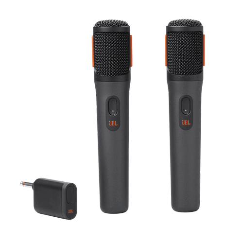 Make your good times even better with JBL PartyBox Wireless Mics. Just plug them into any JBL PartyBox, or use the dongle for the freedom of a wireless connection, and let your voice be heard. Indoors or outside, youll sound clear and captivating on these mics specially tailored to sound amazing over any PartyBox speaker. A built in foam pop filter minimizes any extraneous vocal sounds as you sing a duet with your best friend, and a shock mount system keeps things quiet when youre passing the mic to someone else. Up to 20 hours of play time and because you can still use a mic even while its charging on the PartyBoxs built in power bank, the fun will last as long as the party does. Rock the house with the JBL PartyBox Wireless Mic.