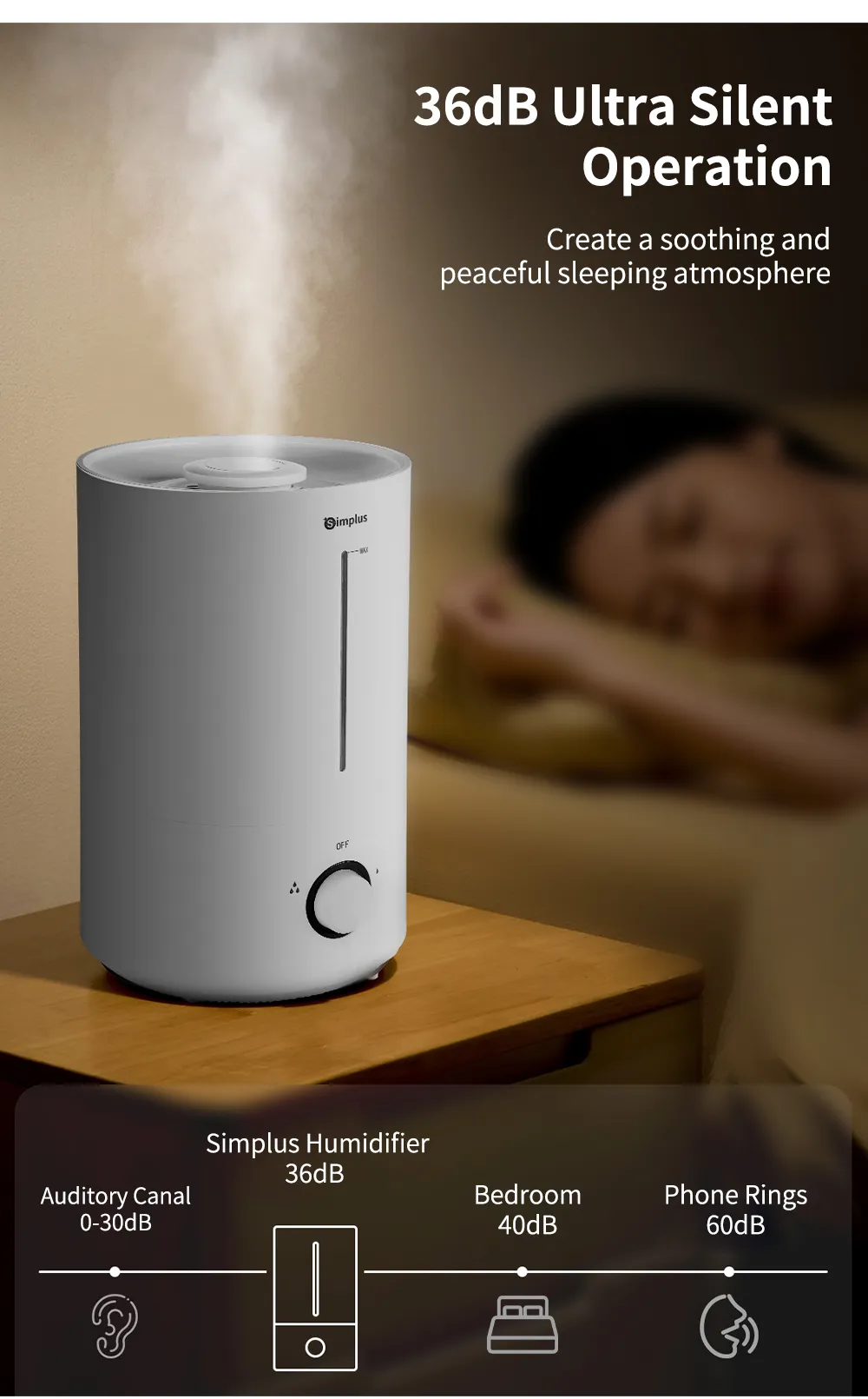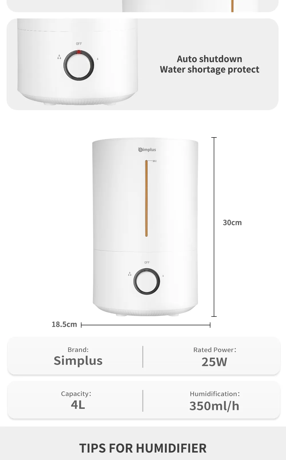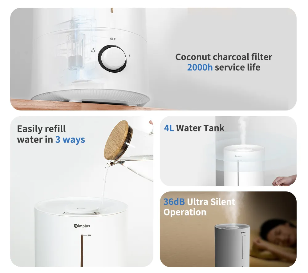 Simplus JASH002WH00 Humidifier helps maintain comfortable indoor humidity levels, improving air quality for better breathing and skin comfort. Designed with a sleek and compact body, it operates quietly and is suitable for bedrooms, offices, and living spaces.